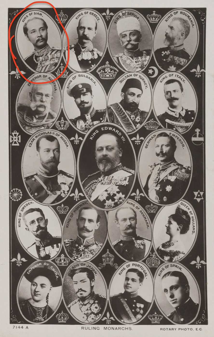 The ruling monarchs of 1908, including a young Chulalongkorn.