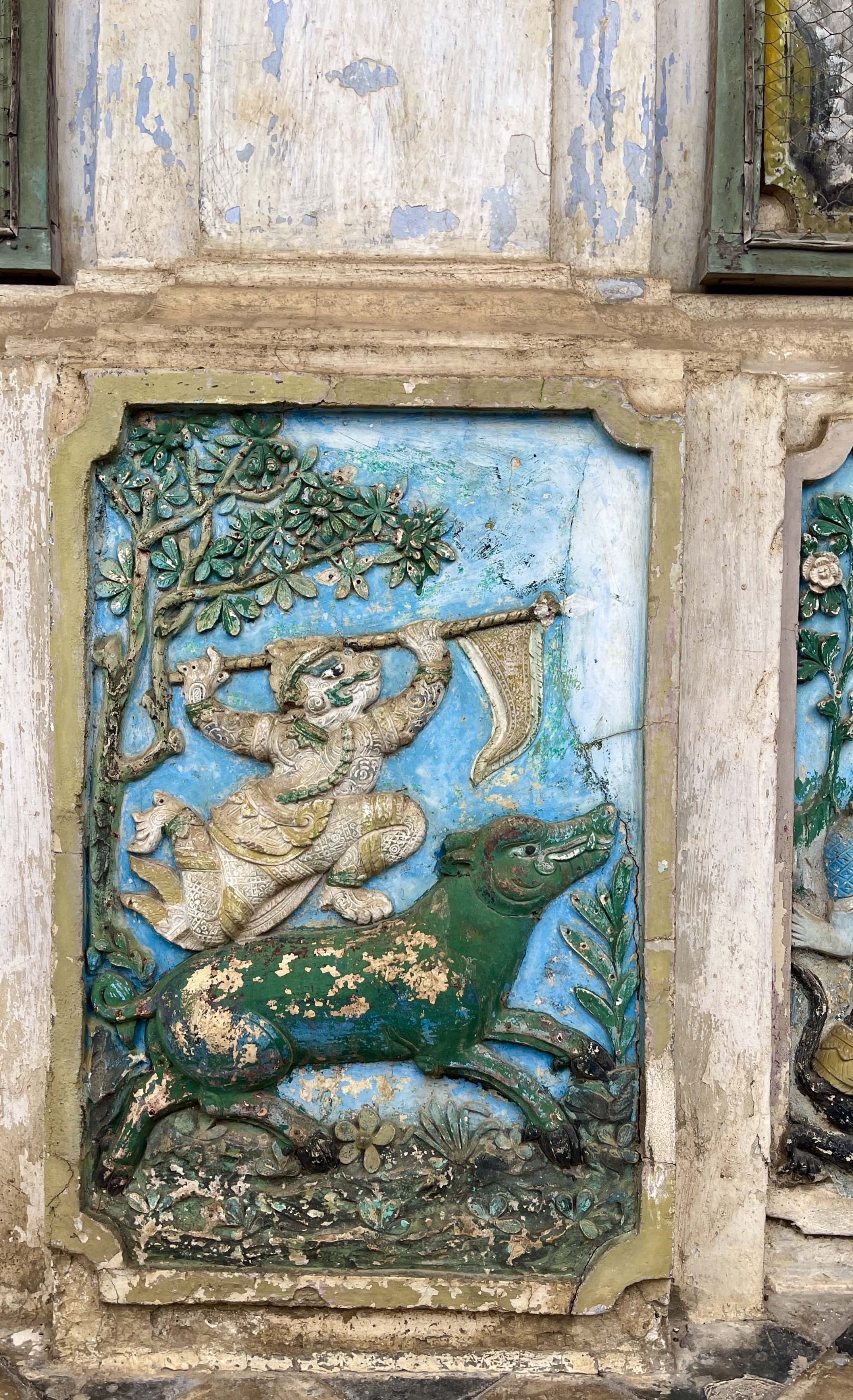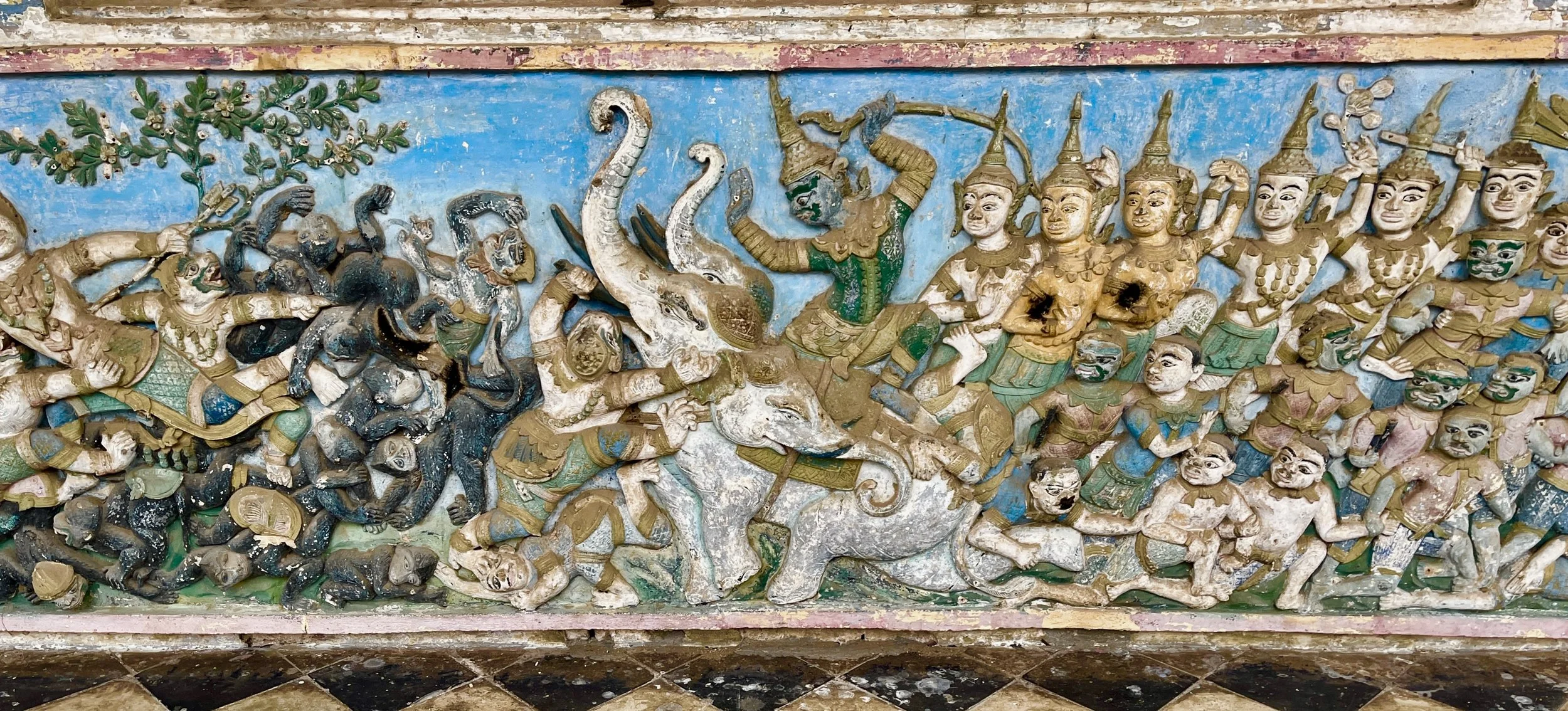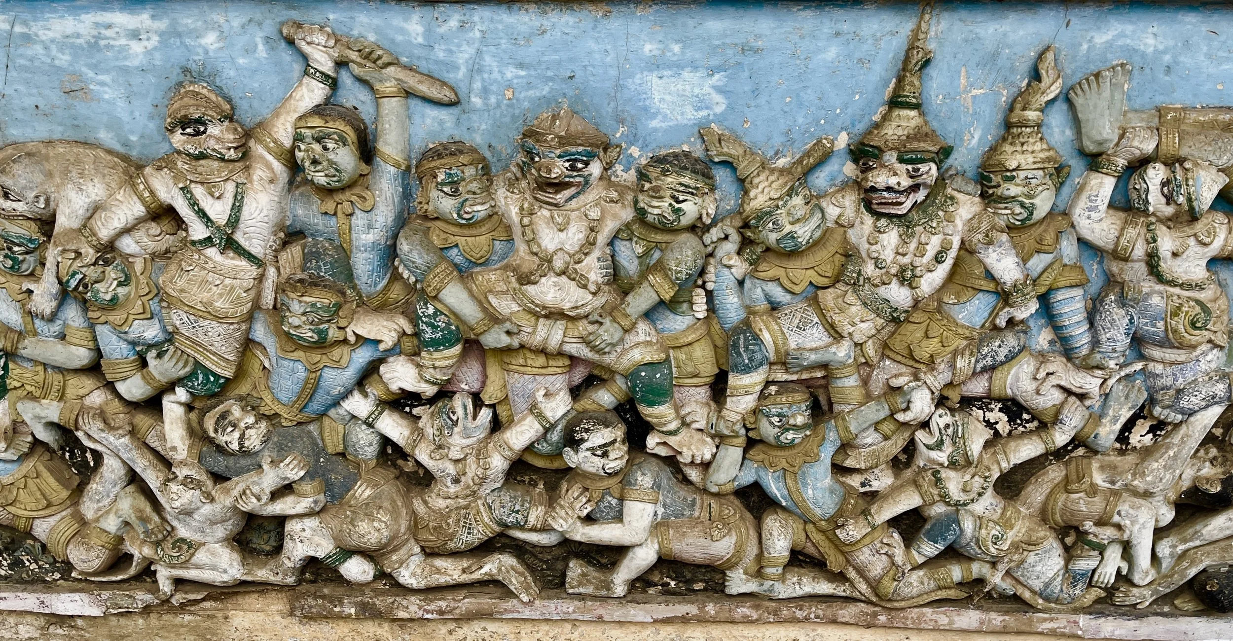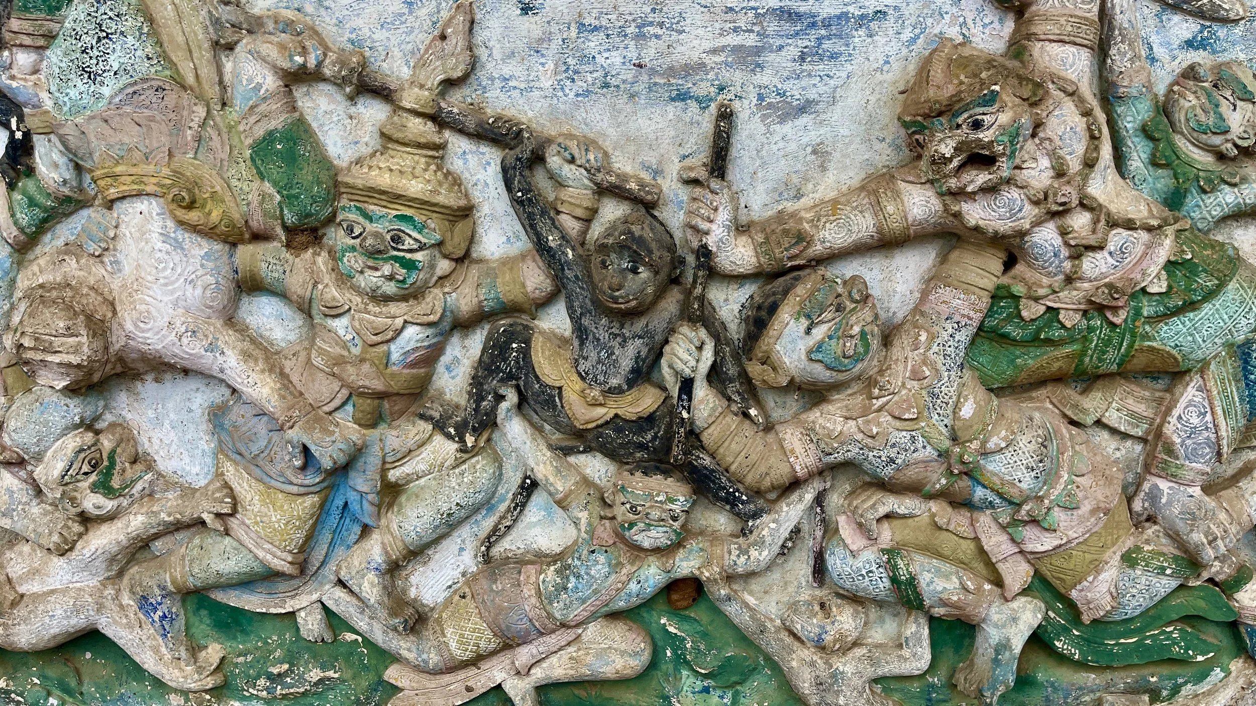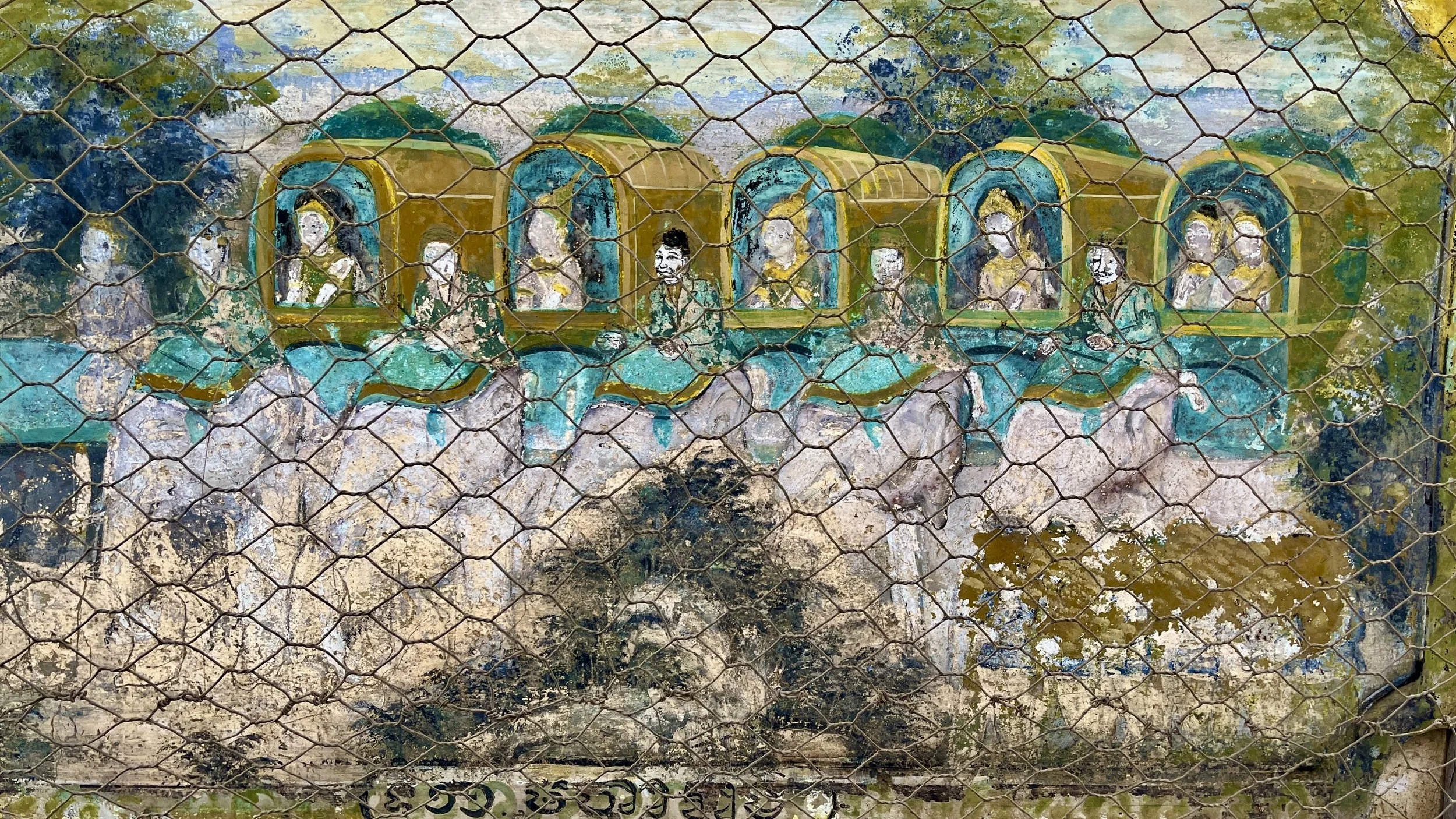 Modern Buddhist depictions have been carved into the mountain outside the bat cave quite recently, post-covid.