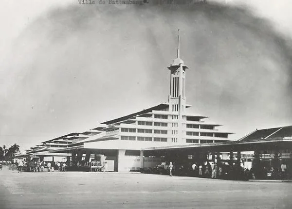 The Khmer district. I’ll be covering the antique Khmer houses around Battambang more thoroughly in a separate blog post (click here); I’ve just chosen this photo as an aesthetic/representative example. This photo of the family of a local administrator outside their house/office was taken by Léon Busy between 1914 and 1921, likely closer to 1921.