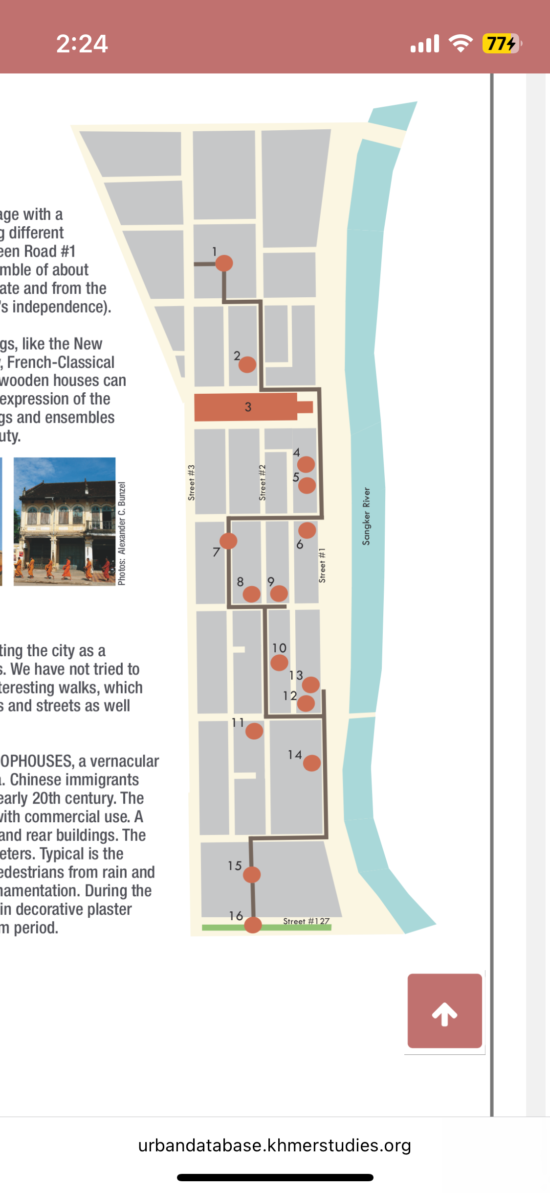 I found this little map showing Battambang’s historical buildings on urbandatabse.khmerstudies.org. It only covers the old Chinese quarter, which was almost completely removed by the French and replaced with simple shophouses, which were then reinhabited by the same people. I’d say it’s bordered at one end by the museum, and on the other by the neighborhood just beyond the 1931 ‘new’ market. I wish the map covered more of the old city.