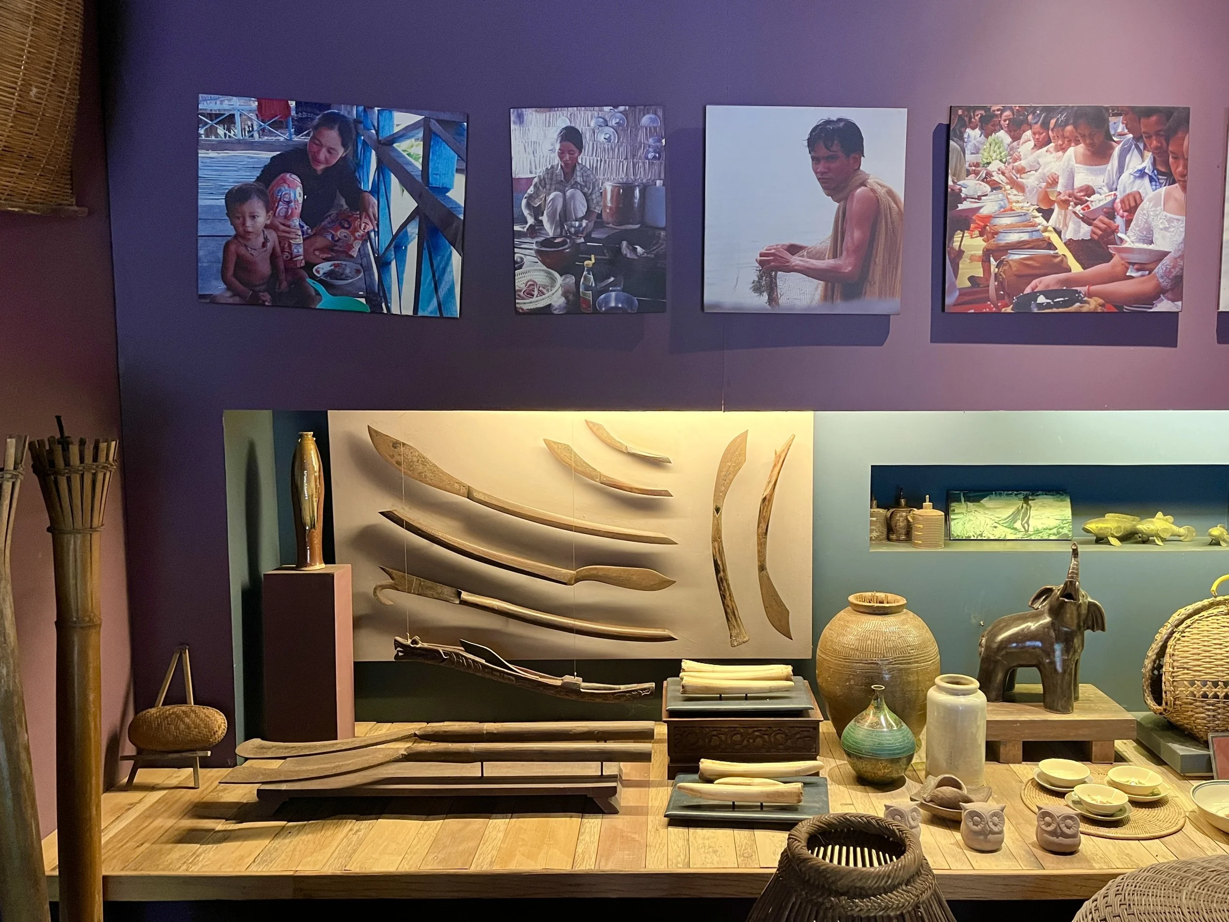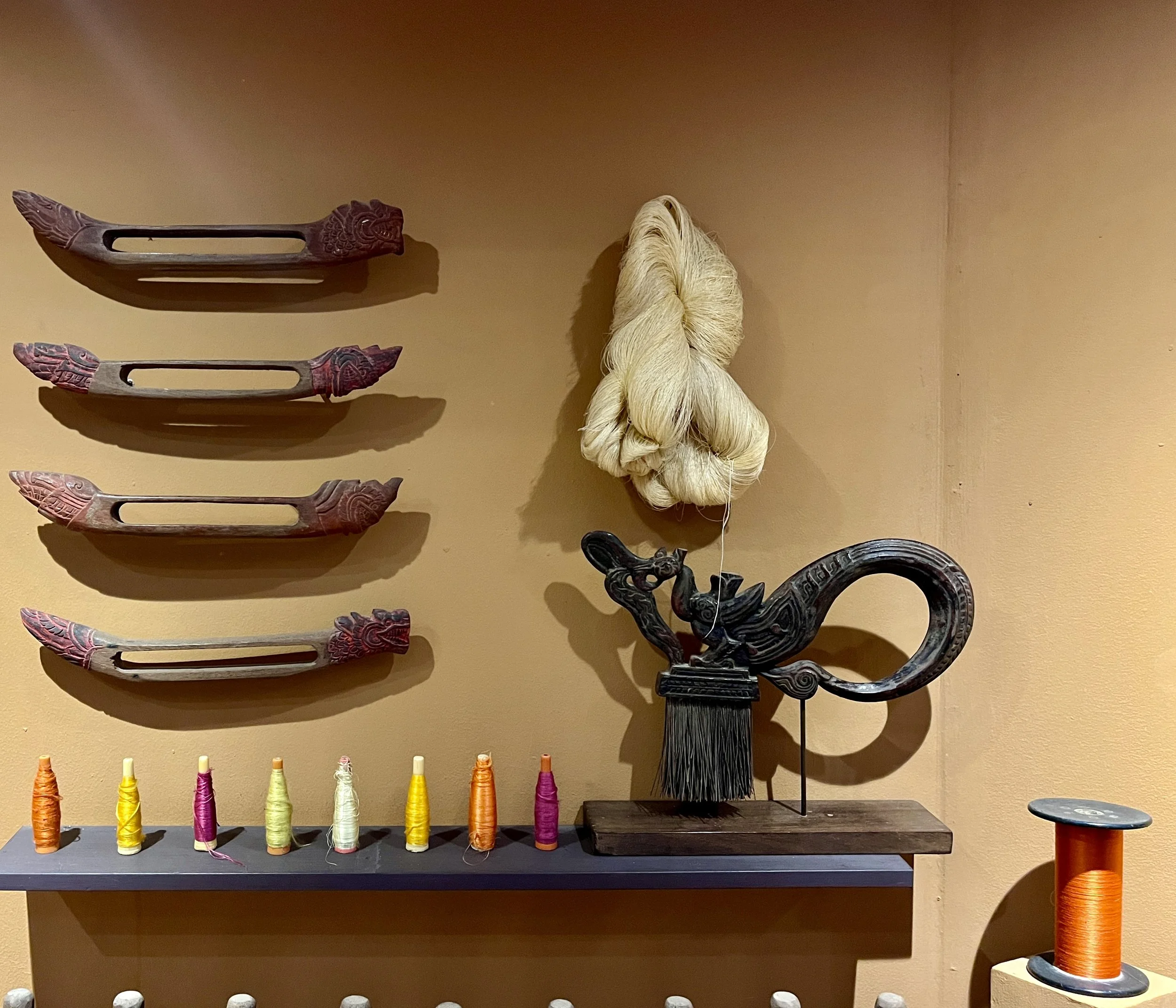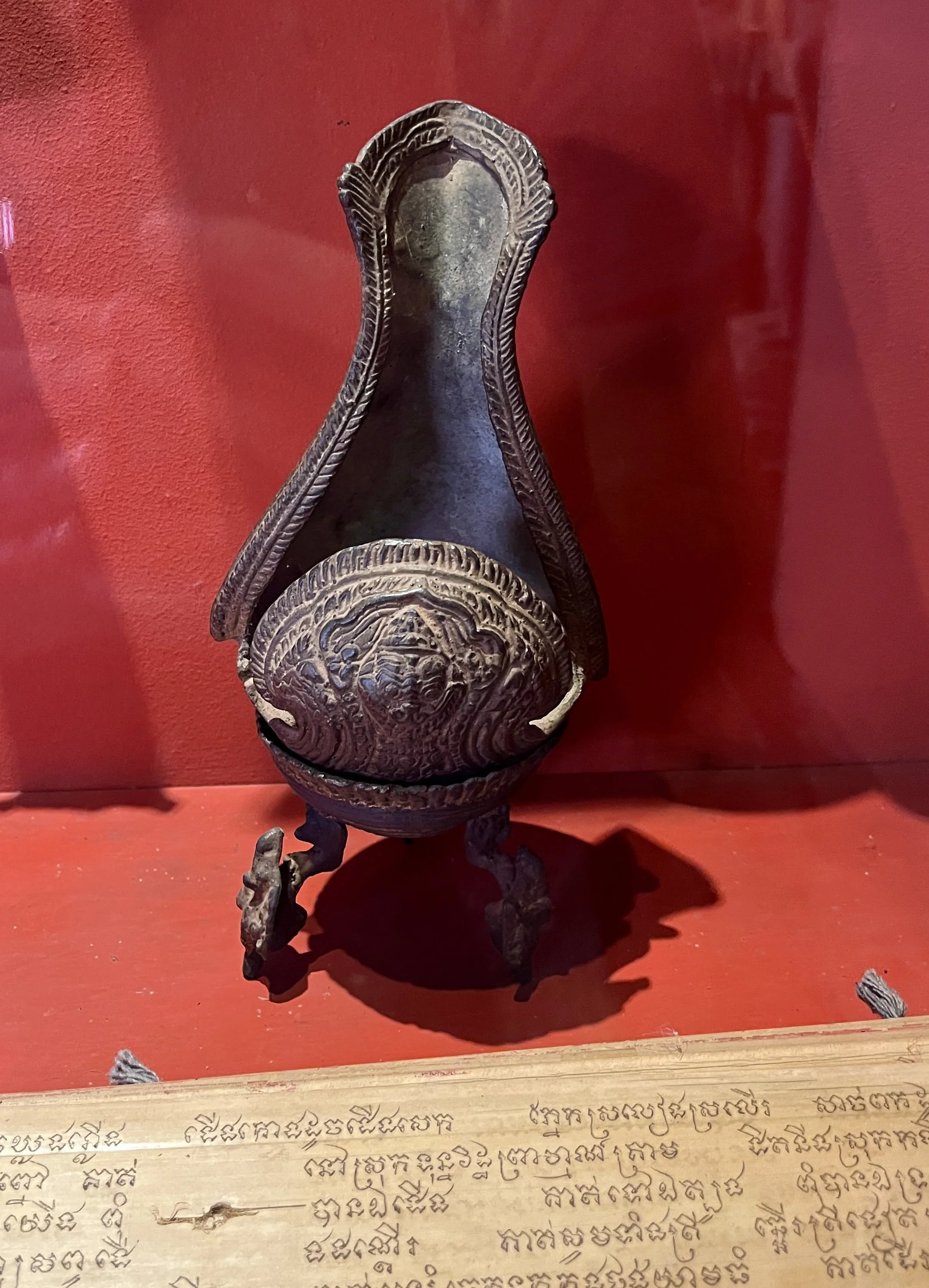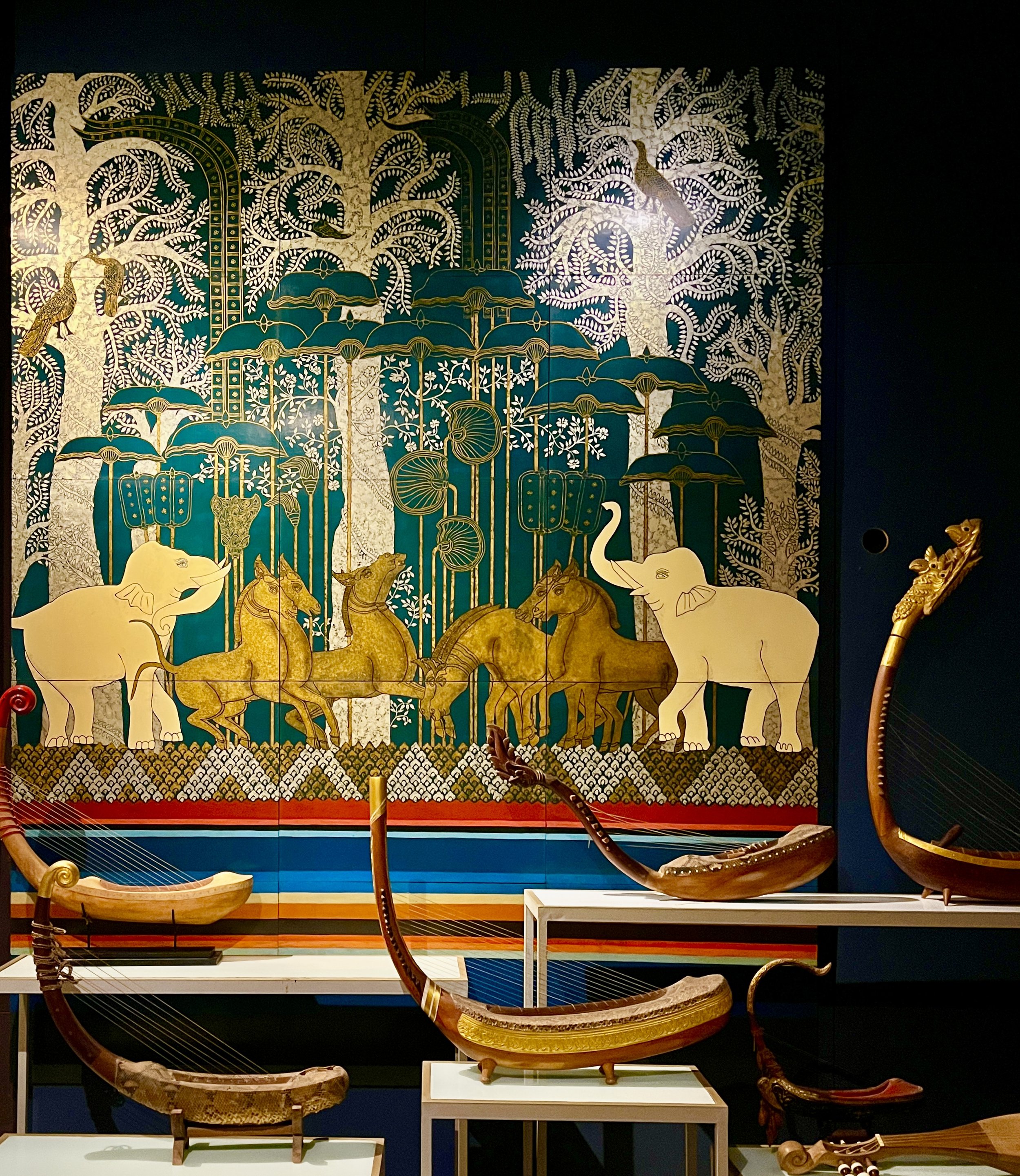 His declared mission is to revive traditional and innovative modes of Cambodian arts and crafts by training local artisans. Onsite there’s an extensive gift shop of his work, that of his protégés, and a collection of the best pieces from other local shops, including IKTT and Artisans d’Angkor . . . all gathering dust, as tourists to Siem Reap generally do not have the budget to spend on this sort of thing, and, even if they did, are more the hiker/backpacker type than the sort who bring home handwoven silk panels and lacquer triptychs, and, even if they were, they’d undoubtedly find the source before they found Theams. So, the admission fee is $5 USD, and I do think it’s worth it.