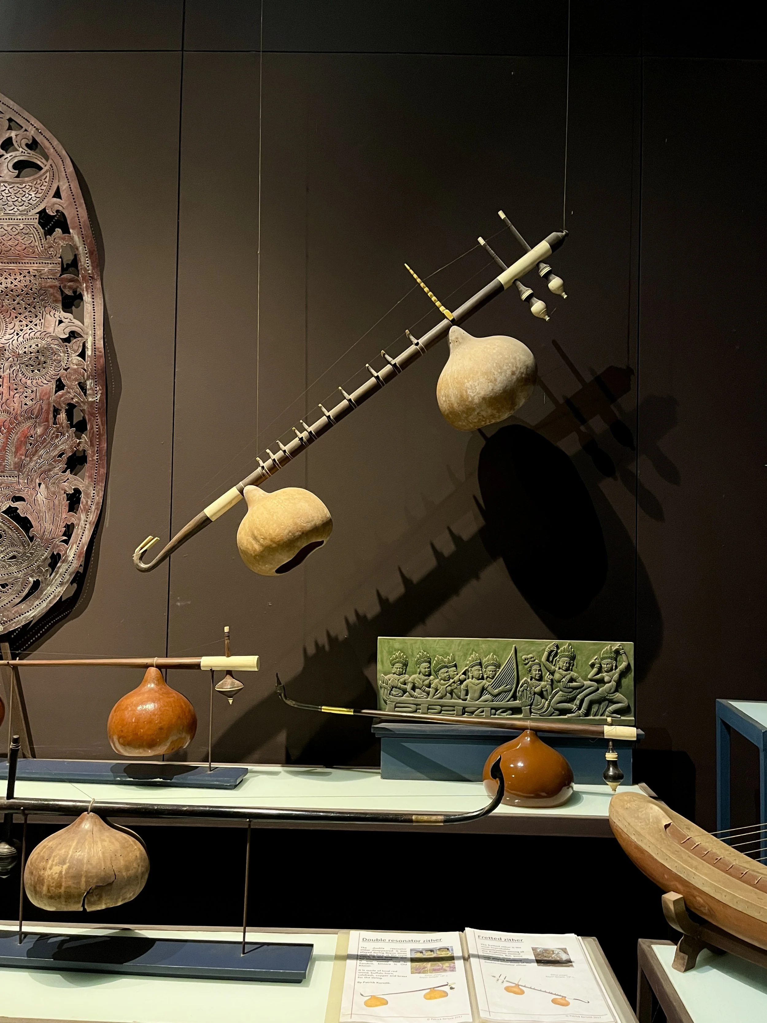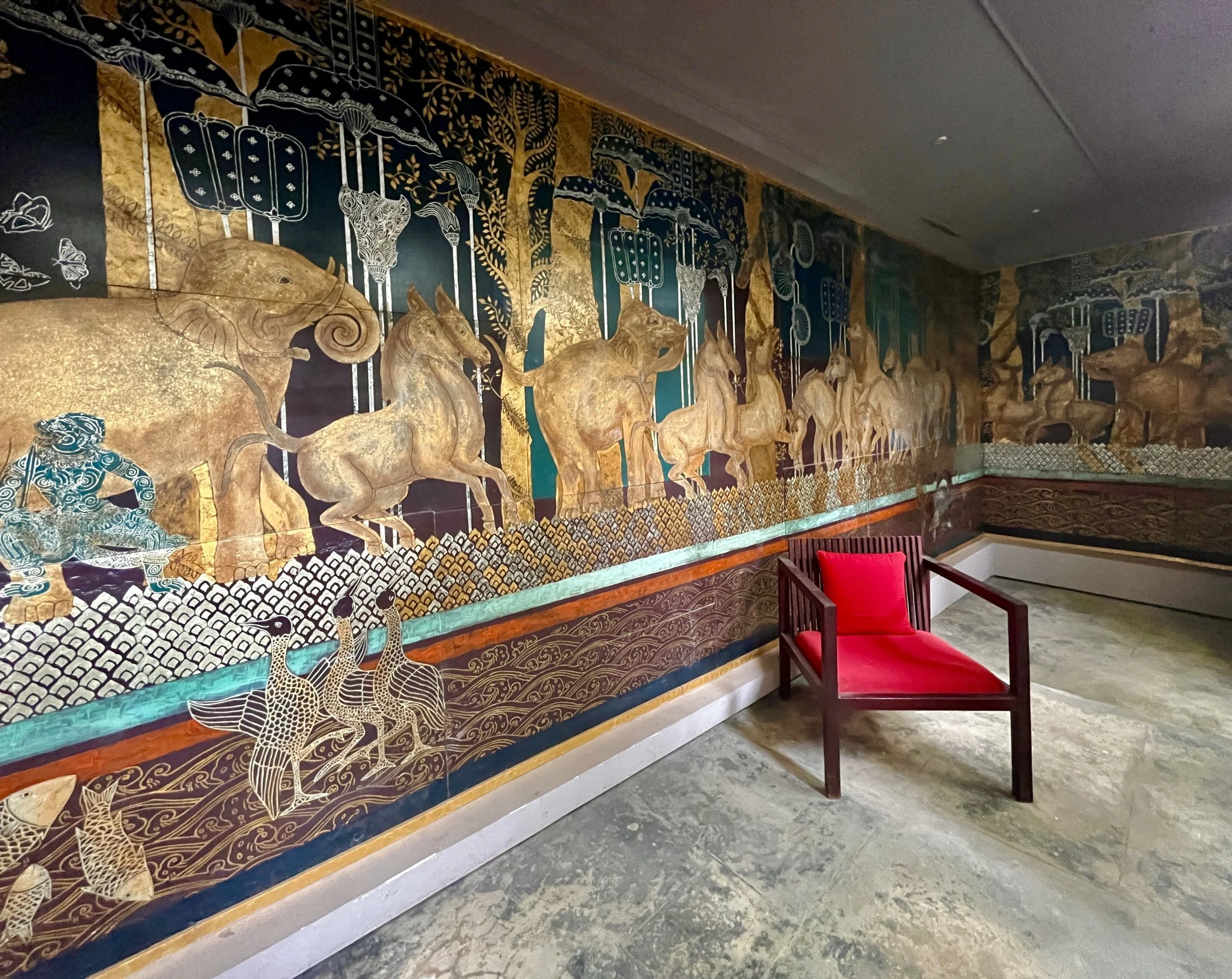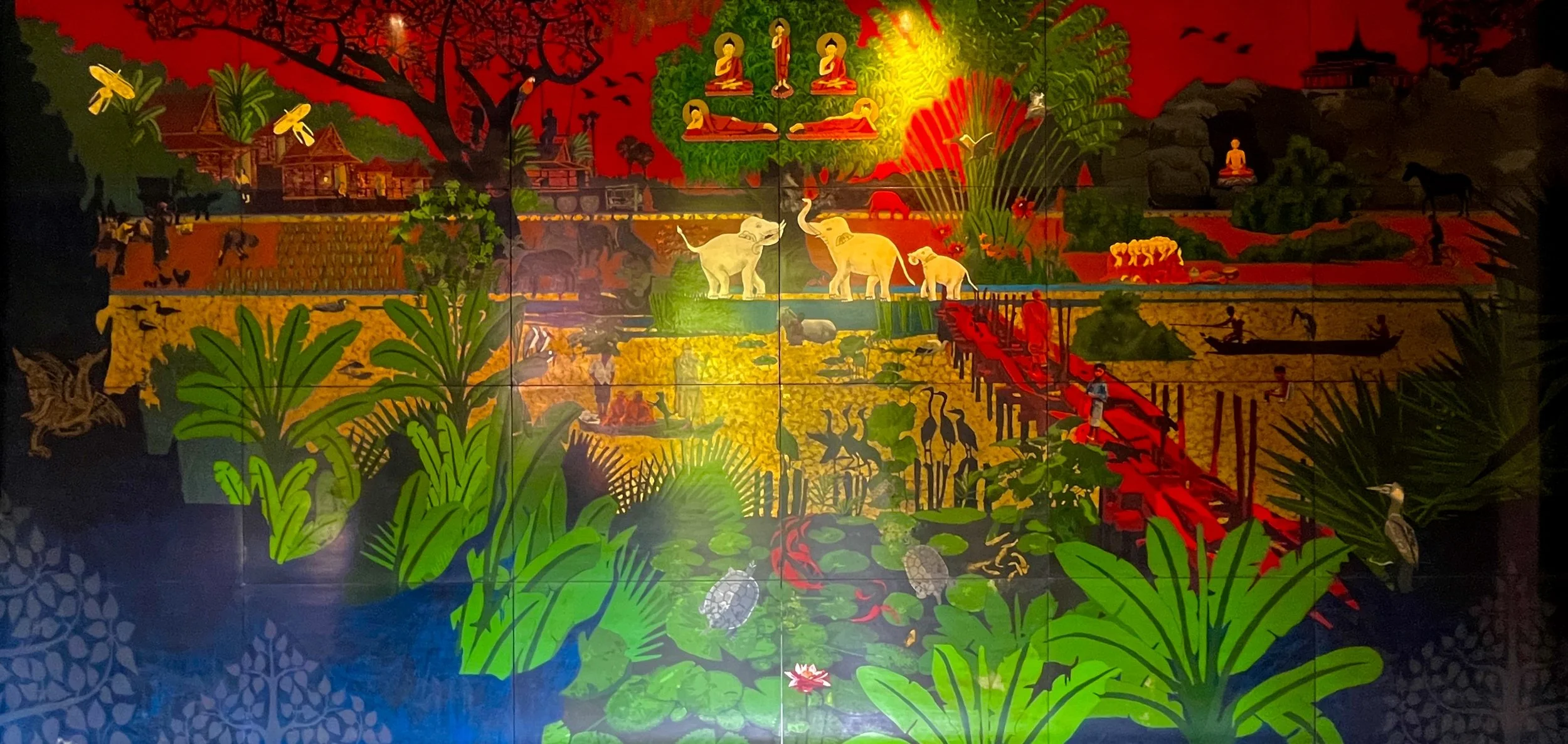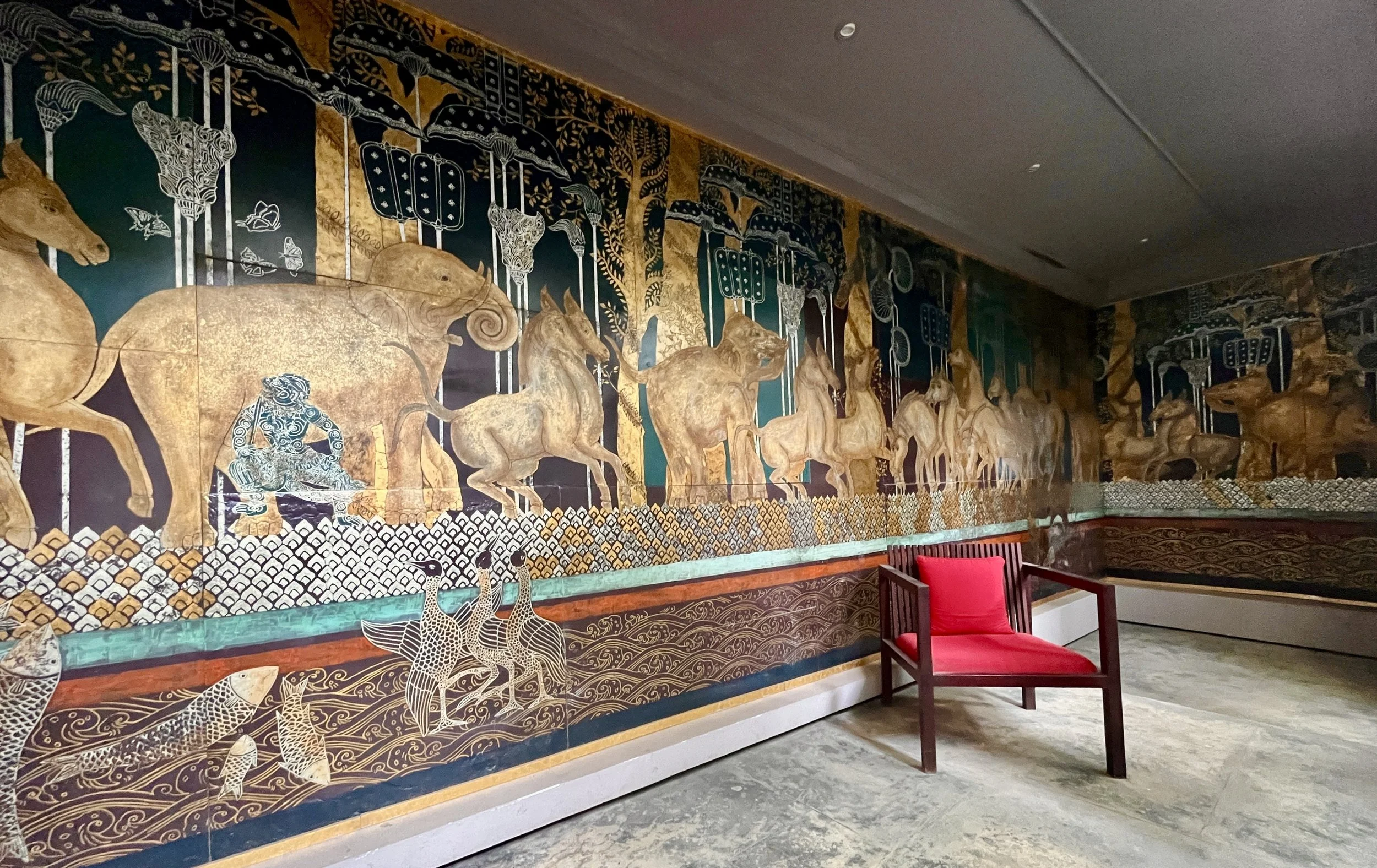 His declared mission is to revive traditional and innovative modes of Cambodian arts and crafts by training local artisans. Onsite there’s an extensive gift shop of his work, that of his protégés, and a collection of the best pieces from other local shops, including IKTT and Artisans d’Angkor . . . all gathering dust, as tourists to Siem Reap generally do not have the budget to spend on this sort of thing, and, even if they did, are more the hiker/backpacker type than the sort who bring home handwoven silk panels and lacquer triptychs, and, even if they were, they’d undoubtedly find the source before they found Theams. So, the admission fee is $5 USD, and I do think it’s worth it.