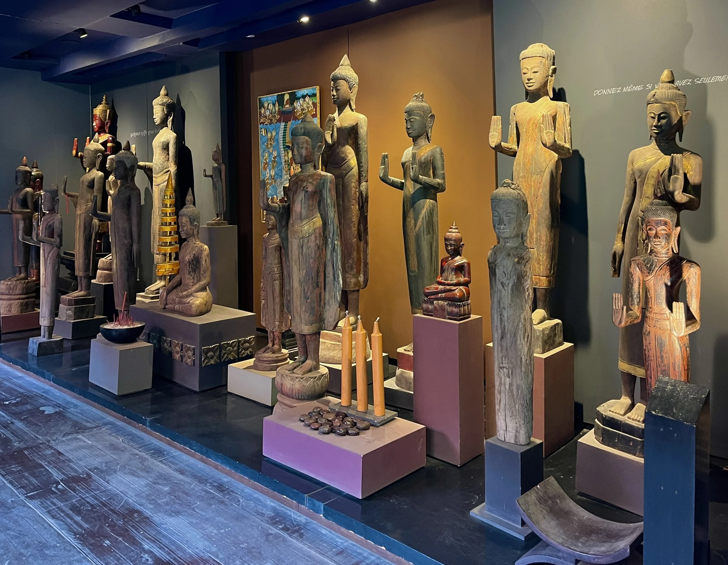 Born in 1969, Lim Muy Theam’s family survived the Khmer Rouge regime and arrived in France as refugees in 1980. According to his bio, he was educated at École Boulle, Beaux-Arts and Arts Décoratifs; his aesthetic is very much idealized Khmer with strong European influence.