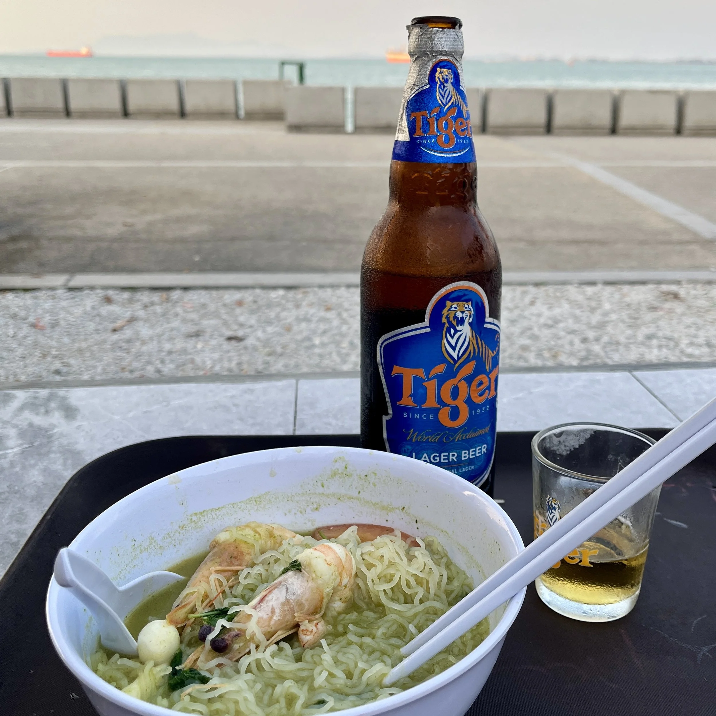I have no idea how this “green tomyam” got a Michelin nod. Perhaps compared to typical Malaysian food it’s unique, but as far as Thai green tom yam soups go, this is beyond basic. I suppose it being (supposedly) fresh seafood, simple, and cheap recommends it. There’s a choice of fish, shrimp, cuttlefish, fish head and grouper, or you can get several. I went with just shrimp because I wasn’t feeling very experimental. The instant ramen noodles annoyed me more than the 25 minute wait time. I hated the outdoor hawker stall atmosphere; people feel free to smoke anywhere they please, and when it’s busy it’s difficult to escape. Also, the view of the water is really not that special. It might feel special from a pool at the E&O; it doesn’t sitting here. Wouldn’t bother again.